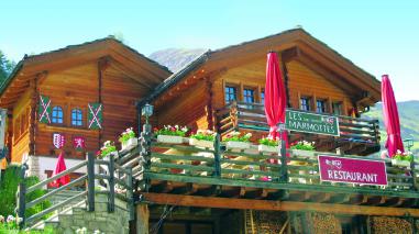 Spécialités à base de gibier de la chasse personnelle, viande de veau de la ferme. Assiette des marmottes avec viande séchée et saucisse maison, différents plats de pâtes, croûte au fromage, fondue au fromage.